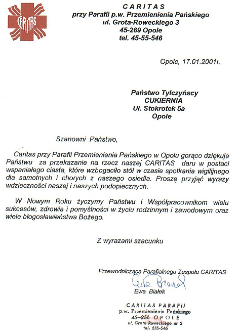 W kwietniu 2006 r. rozstrzygnięto konkurs "Piernik Piastowski" ogłoszony przez Urząd Miasta Opola. Komisja przyznała naszej cukierni wyróżnienie.